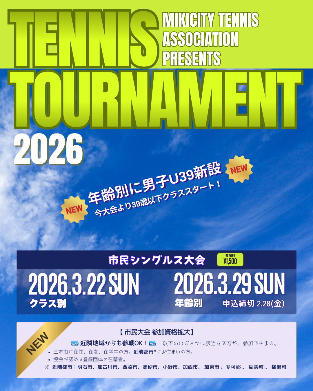2026年度三木市民テニス大会(シングルス)のお知らせ